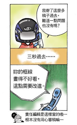 但是,即使是在那樣的困境裡,我始終知道,我必須面對讀者,必須把作品給別人看,聽取旁人的意見。既然出版社那方面的專業看法我無法得到,至少,我可以拿給外行人看。外行人不懂分鏡原理,不懂作畫技巧,不懂構圖不懂編劇,但是他們懂得分辨什麼是好看的故事,什麼不好看。